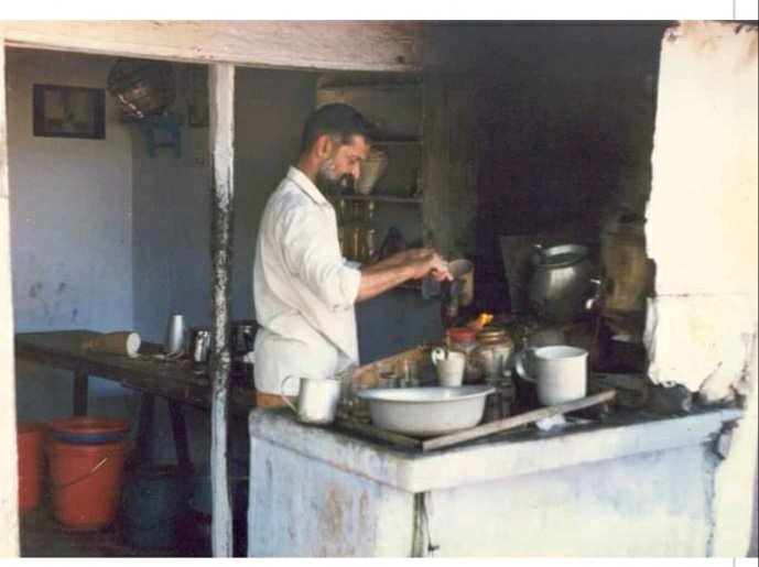 കണ്ണേട്ടാ ഒര് ചായ എന്ന് പറഞ്ഞാല്? ചെറിയ സ്റ്റവ്വില് തിളയ്ക്കുന്നതില് നിന്നും രണ്ടോ മൂന്നോ ടീസ്പൂണ് പാലും അടുത്തുള്ള ഭരണിയില്നിന്ന് ഒന്നോ രണ്ടോ ടീസ്പൂണ് പഞ്ചസാരയും ഒരു ചെറിയ കൈപ്പാത്രത്തില് ഇടും. സമാവറിന്റെ മുകളില് നിന്നും വേറൊരു കൈപ്പാത്രം എടുത്ത് അതിലുള്ള തുണിപോഞ്ചിയില് കുറച്ചു ചായപ്പൊടി ഇട്ട്, സമാവാറിന്റെ ടാപ്പ് തുറന്ന് ചൂടുവെള്ളം ചേര്ത്ത് സുമാര് അളവാണെങ്കിലും ചെറിയ സ്പൂണ് കൊണ്ട് കട, കട, കട, കട അടിച്ച് മിക്സ് ചെയ്ത് വായുവിലേക്ക് നീട്ടി രണ്ടുവലിവലിച്ച് ഗ്ലാസ്സില് ഒഴിക്കുമ്പോള് ചായ പതഞ്ഞുപൊങ്ങി ഏതാണ്ട് ഗ്ലാസ്സിന്റെ മുക്കാല് ഭാഗം വരെ ഉണ്ടാവും. അതില് ഏകദേശം ഒന്നൊന്നര സെന്റിമീറ്റര് നുരയാരിക്കും. ചായ ഗ്ലാസില് ഒഴിച്ചുകഴിഞ്ഞാല് പറയുന്ന എണ്ണത്തിന് കറക്ട് ചായ റെഡി.
