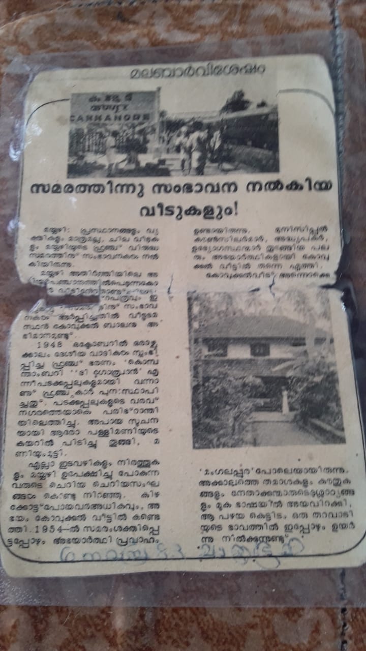 ചിലപ്പോൾ പഴയ പല സംഭവങ്ങളും ഓർമ്മയിൽ എത്തിക്കാണും. അല്ലെങ്കിലും സായിപ്പിന്റെ മുൻപിൽ വെടിവെക്കാൻ വിരിമാറ് കാട്ടി മുൻപോട്ടു കുതിച്ചതും പോലീസ്കാരോട് കീഴടങ്ങാൻ ധൈര്യസമേതം നേരിട്ട് പോയി ആവശ്യപ്പെട്ടപ്പോൾ പോലീസുകാർ സമവായത്തിന് അർഥിക്കുന്നതു കേട്ട് പി. പി നാരായണൻ നായർ സ്റ്റേഷന് പുറത്തു നിന്ന് ഉച്ചത്തിൽ അവരോട് കീഴടങ്ങുന്നോ അല്ലെങ്കിൽ ഞങ്ങളെല്ലാം കൂട്ടി അങ്ങോട്ടുവരാണോ എന്ന് ചോദിച്ചതും? ഒക്ടോബർ വിപ്ലവത്തിന്റെ ഭാഗമായി നടന്ന മര്യാപ്പീസ് ആക്രമ സംഭവമൊക്കെ ഓർത്തുകാണും … ഇതൊക്കെ അച്ഛൻ ഗംഗേട്ടനോട് പറഞ്ഞു കൊടുക്കുന്നത് കേട്ടതാണ്…,