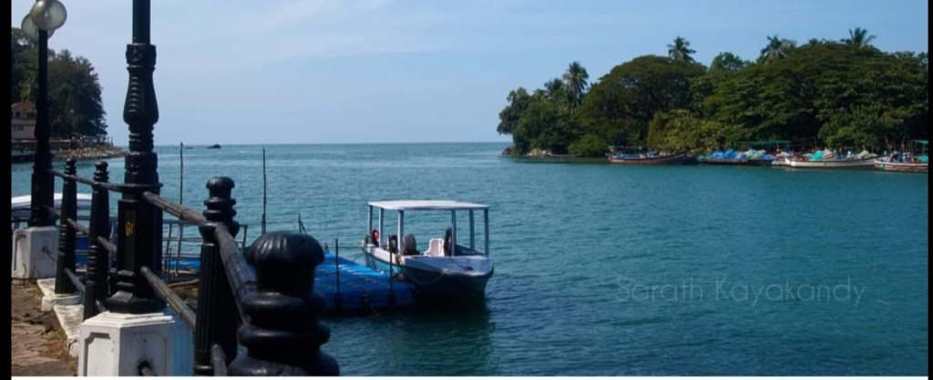 ചുറ്റും പച്ചപ്പും ദൂരേ രണ്ടു കുന്നുകളും നടുവിലൂടെ ഇളം നീലയും പച്ചയും പട്ടുടുത്ത നദിയും. അഴിമുഖത്തടിക്കുന്ന തിരയുടെ ശക്തിയില് രൂപപ്പെടുന്ന വെള്ളിനൂല്കൊണ്ടുള്ള എംബ്രോയ്ഡറി തുന്നിച്ചേര്ത്ത ബോര്ഡറും. തിരയുടെ ശബ്ദം ചിലങ്കയുടെതായും പൂത്ത ഗുല്മോഹര്മരം ചുകന്ന 24 കാരറ്റ് റൂബിയിട്ട കടുക്കാനുമായി അവര് ഒരുപക്ഷേ സങ്കല്പിച്ചുകാണും!